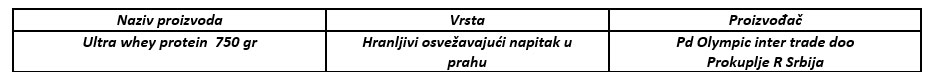 Vrsta proizvoda: Hranljivi osvežavajući bezalkoholni napitak u prahu