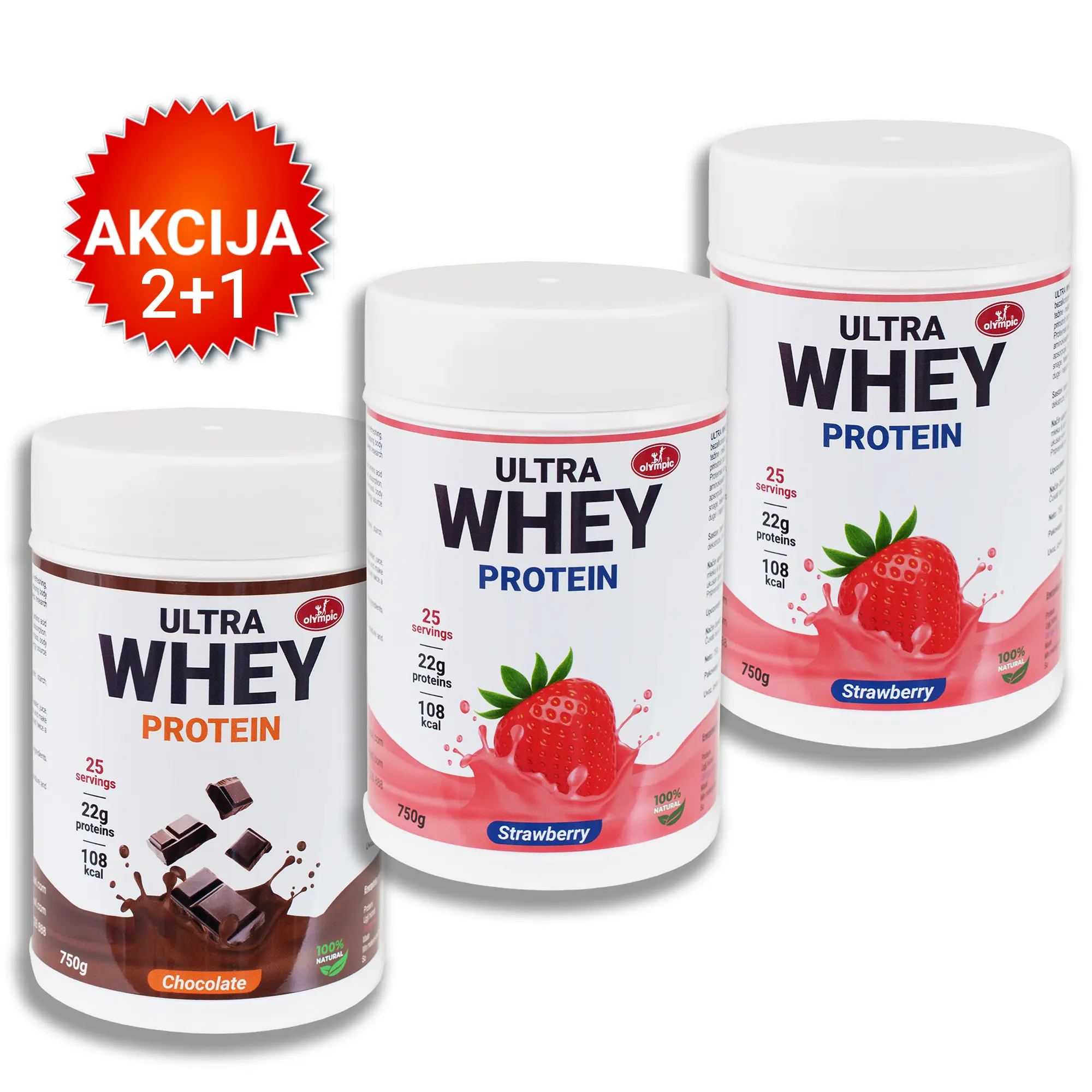 Olympic Protein Ultra Whey 100%, 750g, Čokolada, Jagoda + Jagoda gratis