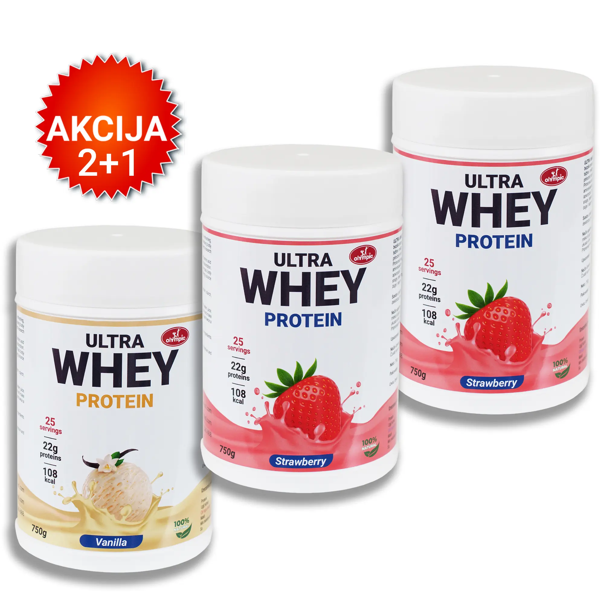Olympic Protein Ultra Whey 100%, 750g, Vanila, Jagoda + Jagoda gratis