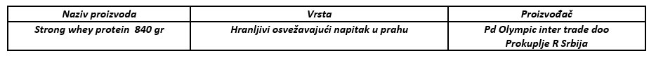 Vrsta proizvoda: Hranljivi osvežavajući bezalkoholni napitak u prahu Neto količina: 840 g